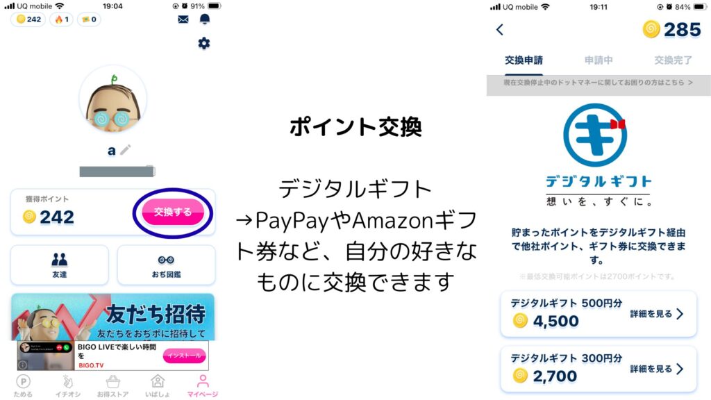 貯めたポイントはPayPayやギフト券などに交換可能です。