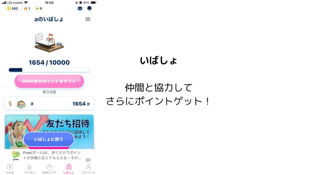 友達といっしょに歩数が貯まるのを楽しめる機能です。