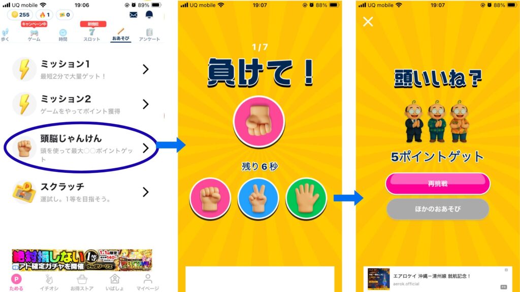 1日に5回挑戦することができ、動画視聴で5ポイント、視聴なしで2ポイントをゲットできます。