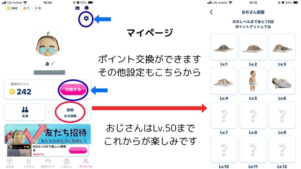さらに“おぢさん”というキャラクターの育成要素も備えたポイ活アプリです。