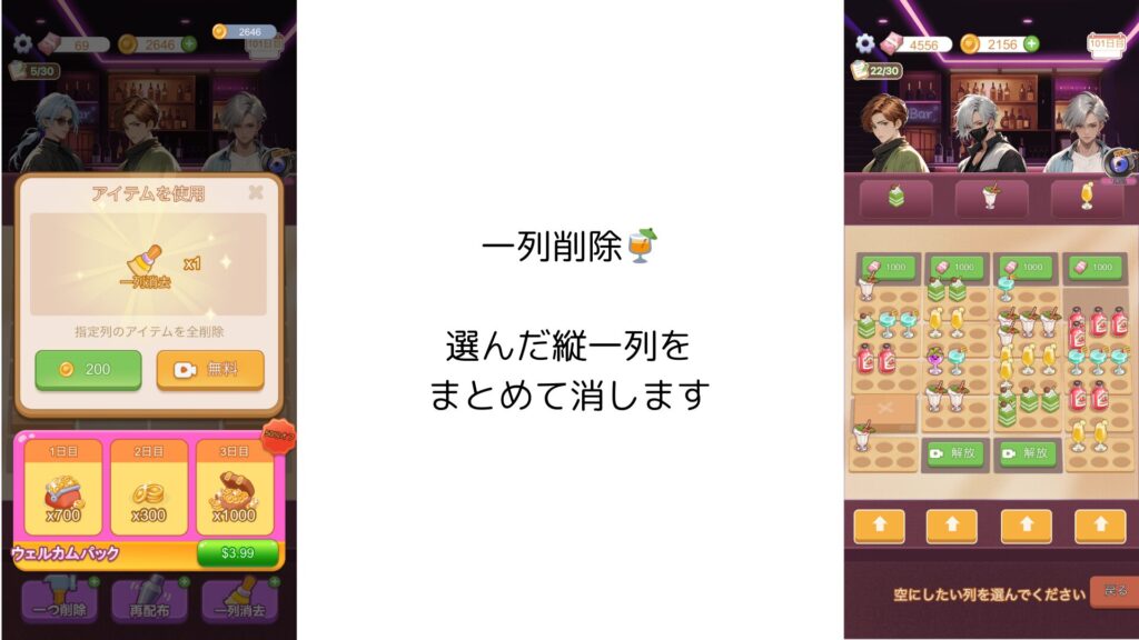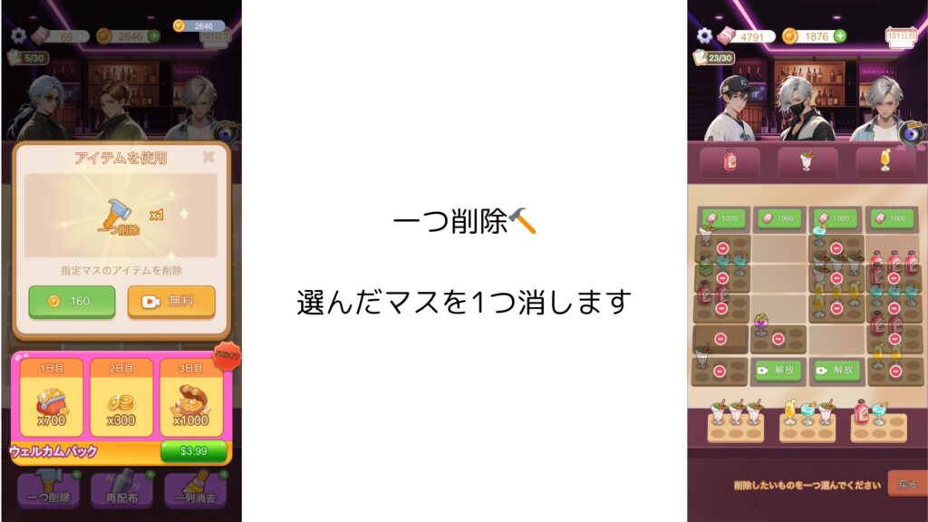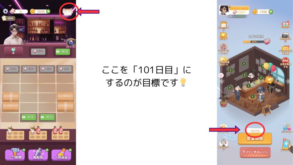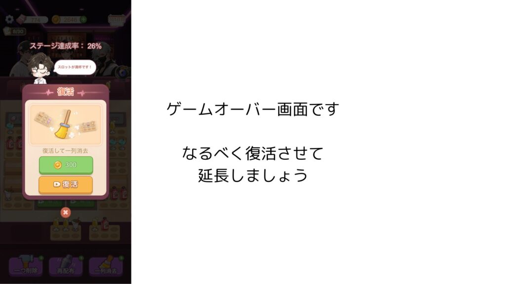 ホーム画面で営業開始したら、パズルステージが始まります。