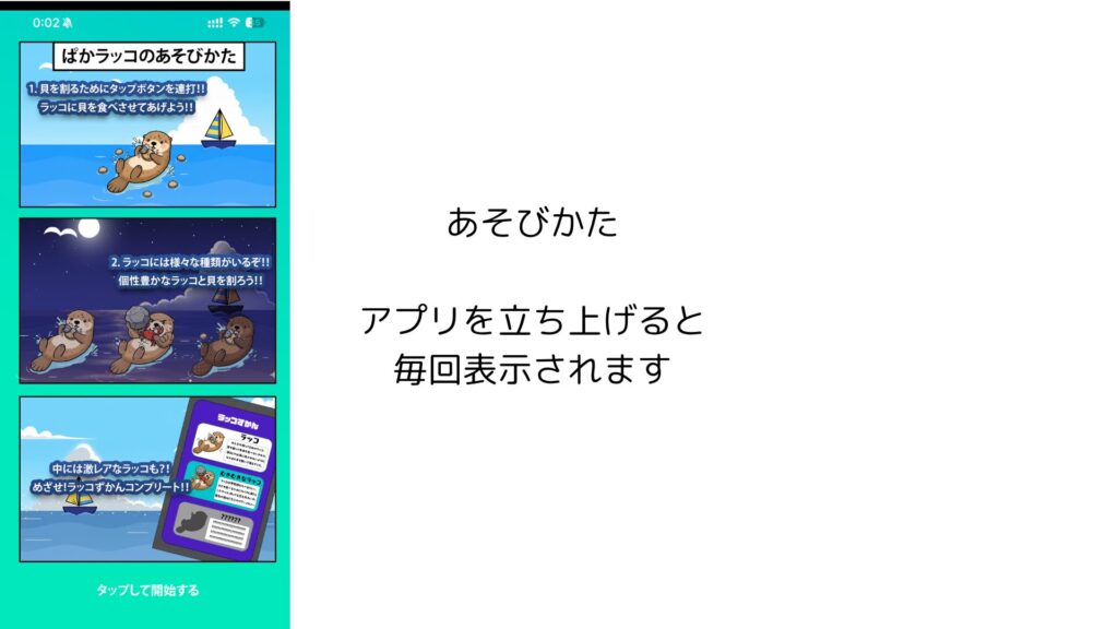 『ぱかラッコ』は、画面上に現れるラッコをタップ(または叩く系操作)して
