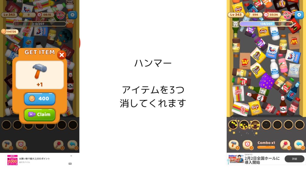 プレイ途中に入ることはなく、困ったときは広告に助けてもらえます🎥