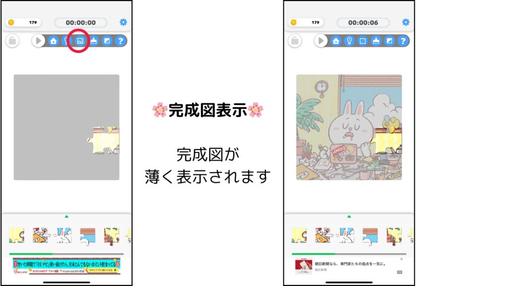 パズルの背景に完成図を表示させてくれます。