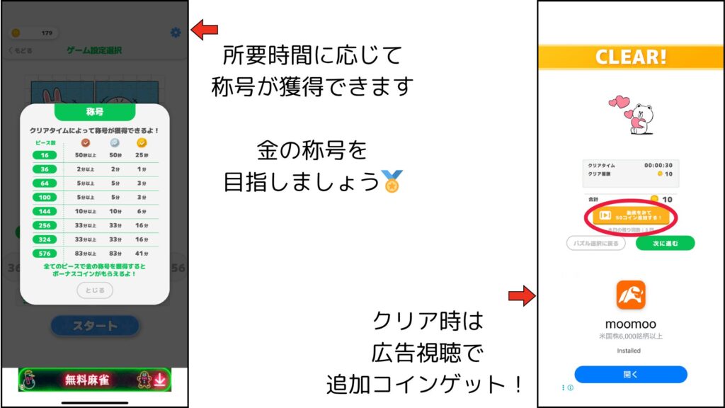 ゲームをクリアすると「コイン」や「称号」が手に入り、