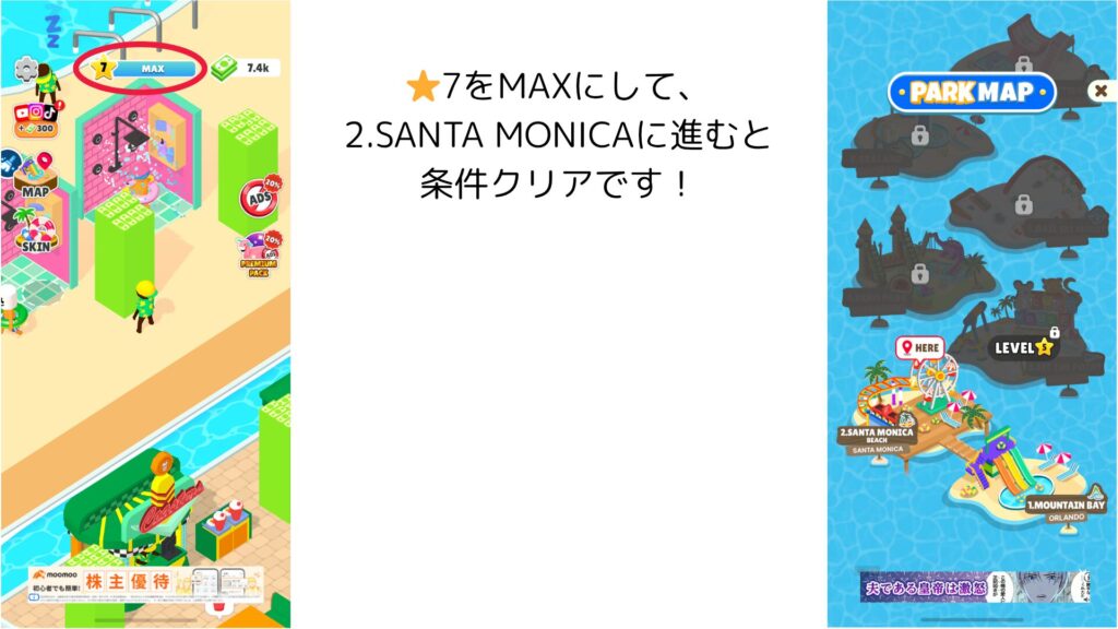 | 条件 | 7日以内に Stage2 Open(2番目のステージ SANTA MONICA BEACHオープン) |