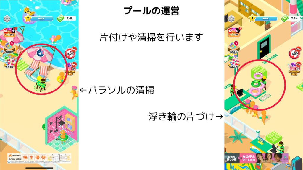 プールを運営する経営シミュレーションゲームです。