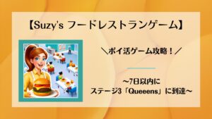 - 【Suzy’s フードレストランゲーム】ポイ活ゲーム攻略!~7日以内にステージ3「Queeens」に到達~